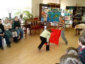 И, наконец, настал день торжественного закрытия Недели Испании в библиотеках Московской области. 11 апреля участников Недели в читальном зале нашей Детской библиотеки ждали не только сотрудники, но и рыцарь Дон Кихот и его верный оруженосец Санчо Панса. Вместе с ними и библиотекарем Ванифатовой Л.А. ребята и отправились в занимательное и познавательное путешествие по городам Испании.