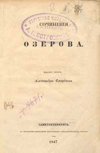 Сочинения Озерова. - Санкт-Петербург: А. Смирдин, 1846. - [4], 452 с. ; 17 см. - (Полное собрание сочинений русских авторов)