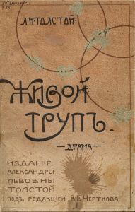 Живой труп : Драма в 6 д. и 12 карт. / Л.Н. Толстой ; Под ред. [и с предисл.] В.Г. Черткова. - М.: изд. А.Л. Толстой, тип. Тов-ва И.Д. Сытина, [1911]. - 68 с., портр., 3 л. ил. ; 26 см.