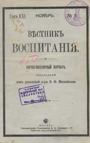 Научно-популярный журнал «Вестник воспитания» . 1910. №8. ноябрь
